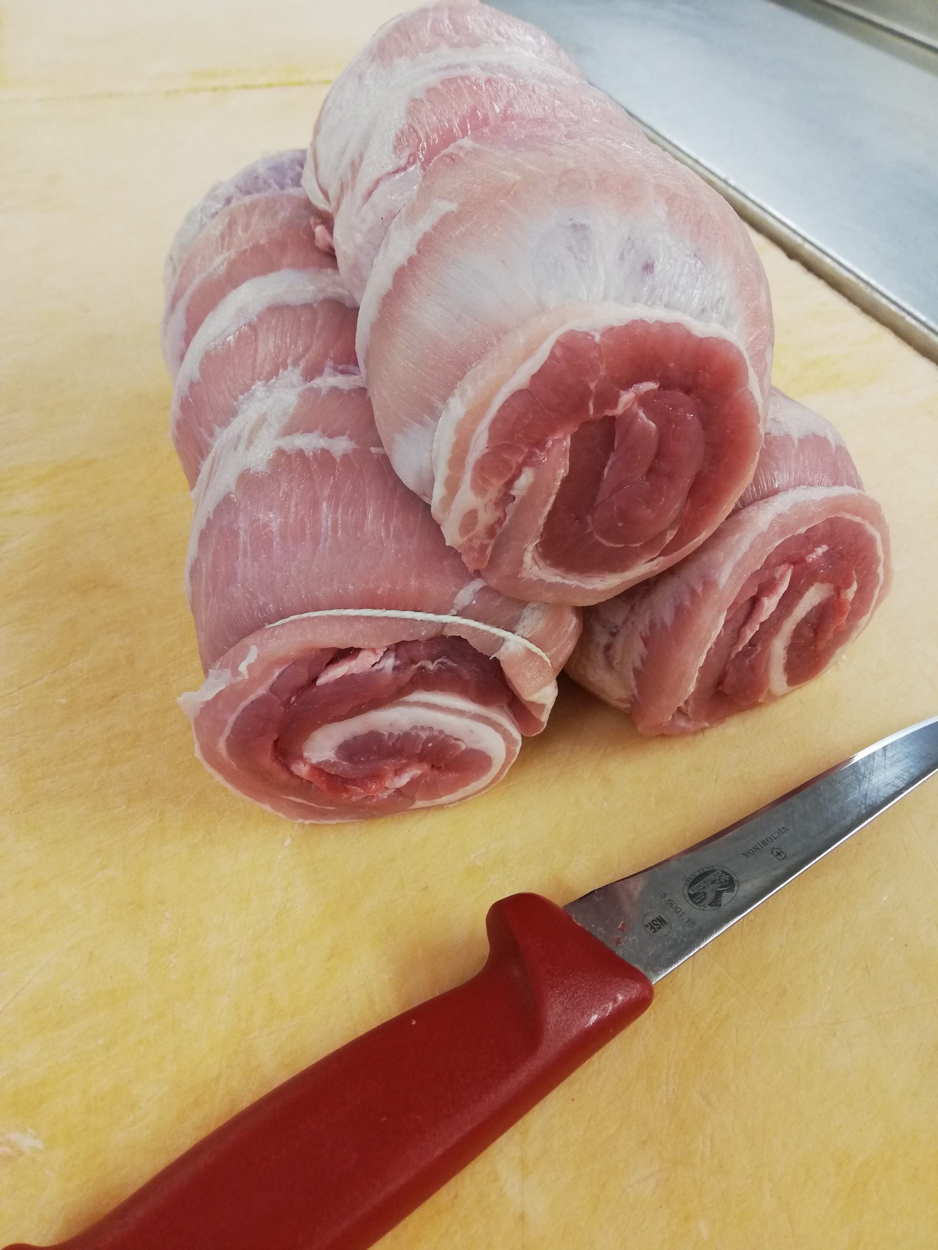 Belly pork. A very popular cut of pork. All the bones have been removed and is oven ready, just need to rub salt in.